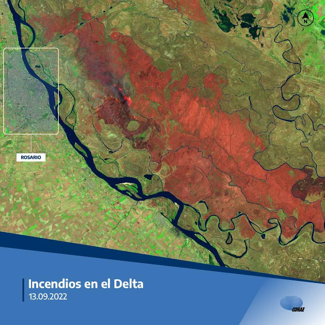 Imágenes satelitales de la CONAE difundidas en las últimas horas por el naturalista Cesar Massi permiten tomar dimensión de los incendios que, en los últimos 76 días, quemaron más de 140 mil hectáreas solo frente a Rosario, en la isla Victoria, considerada como una "Reserva de usos múltiples".
